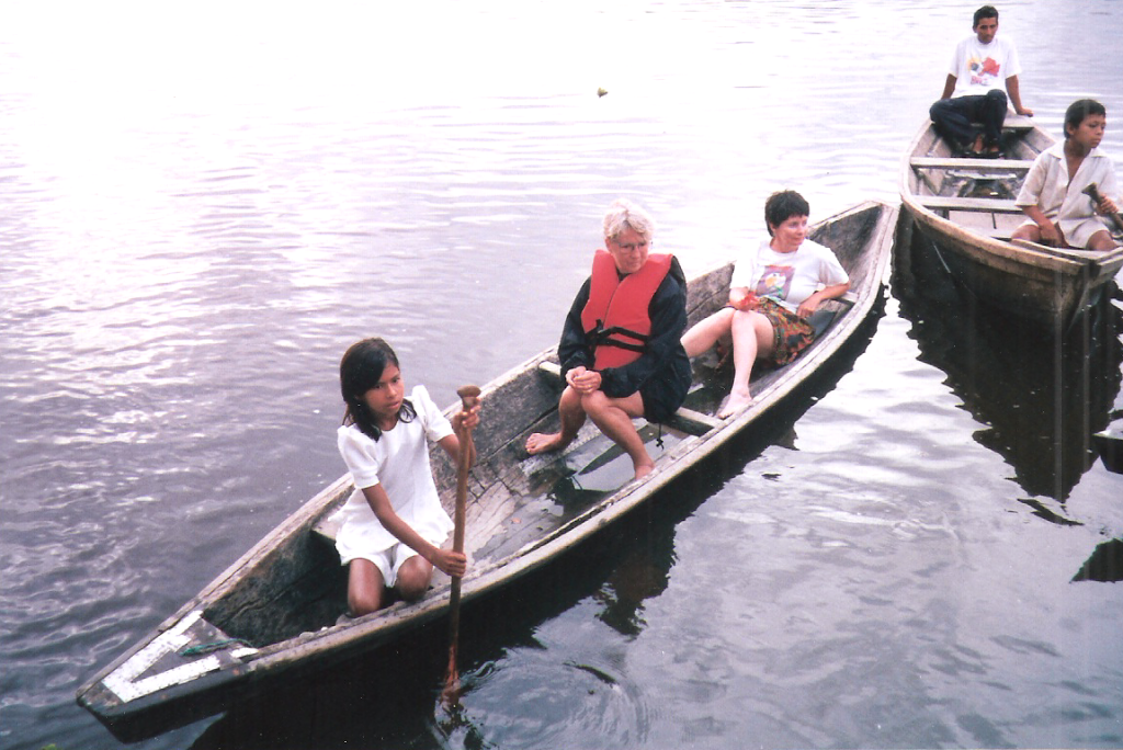 It was that time of day between afternoon and evening, the time of telling light and moving air and silken water. The children picked flowers for us from the bow of the dugout canoes, brilliant reds and whites, and they taught us to pick up floating seed pods and skip them like stones across the river.